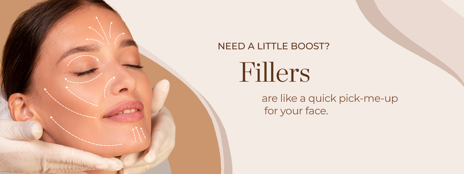 Fillers, also known as dermal fillers or soft tissue fillers, are injectable substances used to restore volume, smooth wrinkles, and enhance facial contours. These substances are typically made of hyaluronic acid, a naturally occurring substance in the body, or other biocompatible materials such as calcium hydroxylapatite or poly-L-lactic acid. Fillers are commonly used to address signs of ageing such as fine lines, wrinkles, hollows, and volume loss in various areas of the face, including the cheeks, lips, nasolabial folds, and under-eye area. During the procedure, the filler is injected beneath the skin to add volume, plump up the skin, and soften wrinkles, resulting in a smoother, more youthful appearance. Fillers are a non-surgical, minimally invasive treatment option with little to no downtime, making them a popular choice for individuals looking to enhance their facial appearance without undergoing surgery.